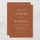 Einfache und elegante Einladungen für eine Hochzeit mit weißer, handgeschriebener Schrift und moderner Schrift vor Terrakotta-Hintergrund. Personalisieren Sie die Front der minimalistischen Hochzeitseinladung mit Ihrem Namen und Ihre Hochzeitsdetails. Personalisieren Sie die Rückseite der Einladung mit Hochzeitsdetails wie Empfang-Informationen, Hotel-Unterkünfte, UAWG-Instruktionen und Hochzeitswebsite. Fügen Sie Ihren Wunschwebseiten-Link in die beiliegende QR-Code-Vorlage ein, damit Ihre Gäste ganz einfach online UAWG und weitere Hochzeitsinformationen erhalten. Die Terracotta-Einladungen sind die perfekte Wahl für moderne Hochzeiten.