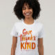 Dieser moderne Erntedank-T - Shirt wurde entworfen, um mit seinem kühnen Pinselskript in lebhaften Herbsttönen gebrannter Orange, Gelb, Terrakotta und Rot inspirieren, mit der aufregenden Meldung "Give Dankbarkeit, Be Kind". Die große, auffällige Kalligraphie schafft ein festliches Statement-Stück, während die individuell anpassbare Namensoption in sauberer, moderner Typografie sie einzigartig macht. Dieses inspirierende Erntedank-Shirt, das für Erntedank-Dinners, Party, Ansammlungen, Familienfeiern und Fotos in der Feriengruppe geeignet ist, verbindet Stil und Positivität und sorgt für eine warme saisonale Touch.