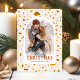 Zeitgenössische Weihnachtskarten mit einem trendigen Terrazzo-Hintergrund in Erdtönen, ein Foto in moderner Bogenform, das festliche Sprichwort "fröhliche Weihnachten", Ihr Familienname und das Jahr. Das Foto dient nur zur Darstellung und wird durch ein eigenes Bild ersetzt.