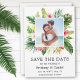 Moderne tropische Aquarellblumen, Grünpflanzen und Palmen Blätter Save the Date Foto Verlobung Announcement Card