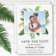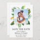 Moderne Tropische Grünflächen Palmen Blätter Save the Date Foto Verlobung Announcement Card