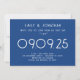 Moderne einfache Typografie Mittelblauer Hochzeit. Moderne Eleganz mit dem vollständig anpassbaren, stilvollen Text-Design. Personalisieren Sie einfach die Wörter und, wenn Sie eine Hochzeitswebsite haben, automatisch generieren Sie einen QR-Code für sie auf der Rückseite, indem Sie die Beispiel-URL durch die URL Ihrer Hochzeitswebsite ersetzen. Sie können den QR-Beispielcode löschen, wenn dies nicht erforderlich ist, indem Sie die Option Weitere bearbeiten wählen. Auf jeder Seite können Sie auch Textfarben, Stile und Hintergrundfarben bearbeiten.