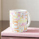 Einzigartige Idee inspiriert durch die faszinierende Welt der grafischen Kunst und Typografie. Beklemmende Schriftart verschiedener blasser Farben schaffen eine optisch ansprechende und ausgewogene Komposition. Fügen Sie Ihren Namen hinzu und machen Sie es zu Ihrem! Dieser personalisierte Schlamm eignet sich hervorragend für den täglichen Gebrauch und macht Freunden, Familie oder Kollegen ein lustiges Geschenk. Geben Sie einfach den Namen ein und erstellen Sie eine individuelle Name-Tasse, die einzigartig und nützlich ist, und ganz Sie. Ideal für Ihren morgendlichen Kaffee, Tee oder Büroschreibtisch!
