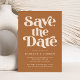 Moderne Save the Date Karte mit "Save the Date" in fett beige Schrift mit Terrakotta-Hintergrund. Personalisieren Sie die stilvolle Save the Date-Karte mit Ihren Namen, Hochzeitstag, Ort, Hochzeitswebsite und anderen wichtigen Details zur Hochzeit.