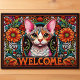 Machen Sie mit unserem Adorable Devon Rex Cat Welcome Doormat eine charmante Aussage. Mit einer reizenden Devon Rex Katze, umgeben von einer pulsierenden und einladenden Grenze, fügt diese Türmatte Ihrer Haustür eine Touch feliner Wärme hinzu. Das Wort "Willkommen" vervollständigt das Design und schafft eine freundliche und einladende Atmosphäre für alle, die eintreten. Diese Türmatte wurde für Haltbarkeit und Stil konzipiert und präsentiert Ihre Liebe für den spielerischen Charme der Devon Rex Rasse. Herzlich willkommen bei den Gästen mit dem unwiderstehlichen Reiz einer Devon Rex Katze und der lebhaften Grenze, die Ihrem Eingang einen farbenfrohen Pop verleiht.