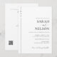 Die Kombination aus Tradition und Technologie vereint dieses raffinierte Ganze in einer Hochzeitseinladung, elegant in einem zeitlosen Schwarz-Weiß-Thema gestaltet. Die Karte verfügt über einen QR-Code, der modernen Komfort nahtlos mit der formalen Eleganz der klassischen Hochzeitsarbeit verbindet. Diese Einladung eignet sich ideal für Paare, die eine erschwingliche und dennoch schicke Lösung suchen. Sie faltet sich perfekt, um Details über die Feier, die Unterkunft und eine direkte UAWG per Scannable Code zu erhalten. Dieses Design verbindet Zweckmäßigkeit und Schönheit und sorgt dafür, dass die Gäste alles haben, was sie brauchen, in einem einfachen, eleganten Paket. Ideal für preisbewusste Paare, die ein minimalistisches und dennoch einzigartiges Hochzeitserlebnis wünschen.