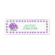 Das moderne Design der Violet-Rücksendeadresse zeichnet sich durch einen farbenfrohen Rahmen aus winzigen Veilchen, ein größeres Bild von Veilchen auf der links Seite und Ihre Rücksendeadresse in einem hübschen grünen Schriftart aus. Entworfen, um die moderne Violet Hochzeitssuite zu begleiten.