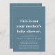 Moderne Zeiten erfordern eine moderne Babydusche. Wenn Sie das Party aus sozialer Distanziertheit online nehmen, ist dies eine gute Einladung für Sie. Der fett spielerische Text lautet "Dies ist nicht die Babydusche Ihrer Mutter" mit einem Schwerpunkt auf dem Nicht, und die Party-Details unten enthalten Platz für Online-Gesellschafts-Informationen, Registrierung, Versandinformationen und mehr zusammen mit den Party-Details. Die Rückseite weist ein koordinierendes, spielerisches Punktmuster auf. Die moderne staubblaue Farbe ist standardmäßig, kann aber durch Klicken auf "Weiter anpassen" geändert werden. Ideal für Duschen mit Begleitung, Duschen mit Adoption und Duschen mit zwei oder zwei Eltern - und alle, die Ihr Gefühl von Spaß und Witz schätzen!
