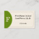 Dieses elegante, moderne und zeitgemäße Design der Visitenkarte bietet einen ersten Brief, Namen, Beruf und Kontaktdaten, die individuell angepasst werden können. Es könnte von einem rechtlichen berufliche wie einem Anwalt, Rechtsanwalt, Rechtsberater oder Anwalt verwendet werden.