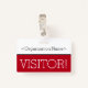 Ce design élégant de badge comporte le message "VISITOR!", ainsi qu'un nom de société personnalisable ou un autre message personnalisé. Un badge comme celui-ci pourrait être utilisé pour indiquer qu'un visiteur ou un invité dans un lieu de travail est autorisé à y être. [~Z0000307]