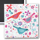 Moderne und zeitgenössische Aquarellvögel und Blume in aquamarinem Grün, Magenta Rosa und Rot auf weißem Hintergrund. Originelle Kunst von Nic Squirrell.