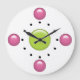 Moderne Wanduhren mit rosa und grünen Polka Punkten auf der Uhr in diesem farbenfrohen Wanddekor-Design für Ihre Küche, Badezimmer, oder jedes Zimmer in Ihrem Haus, das Sie gewollt, um etwas Farbe und Charakter hinzuzufügen.