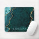 Moderne elegante Wasserfarbe Aquamarin und Gold Marmor Agate Geode Mouse Pad personalisiert mit Ihrem Namen.