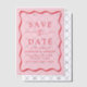 Ankündigen Sie Ihre Hochzeit im Stil mit unserem modernen Wavy Frame Vellum speichern Sie die Datumskarten! Mit ihren Namen und Hochzeitsdetails, elegant gerahmt durch einen fett roten Flügelrahmen vor einem weichen rosa Vellum-Hintergrund, schafft dieses Design einen bemerkenswerten Kontrast, der Charme und Eleganz ausstrahlt. Ideal für Paare, die eine einzigartige Mischung aus modernen Trends und Retro-Flair suchen, diese speichern die Daten so unvergesslich wie Ihre Liebe. Personalisieren Sie dieses Design, um die Begeisterung Ihres besonderen Tages zu teilen und Ihren Gästen einen wahren Schatz zu geben, den sie schätzen. Set den Ton für eine Feier voller Liebe und Stil!