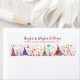 Ein wunderschönes Weihnachtsbaum-Rücksendelabel. Dieses farbenfrohe und helle Design besticht durch gepunktete Weihnachtsbäume und stilvolle Typografie. Einfach mit Ihren eigenen Details anpassen.