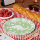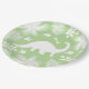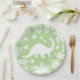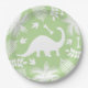 Niedliche moderne weiße Dinosaurier Brontosaurus-Silhouette und Dschungellaub tapezieren Teller.