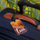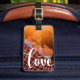 Dieser stilvolle und Spaßgepäckumbau kennzeichnet das Wort "Liebe" im modernen und wunderlichen weißen Text, mit Raum für Ihre Namen. Ihr LieblingsFoto füllt den Hintergrund. Personifizieren Sie die Rückseite mit Ihren Kontaktinformationen.