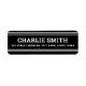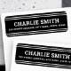 Schwarze oder benutzerdefinierte Rücksendeadressen-Aufkleber mit weißen Linien oben und unten und Ihren Namen in einem weißen, fett gefärbten Schriftart mit der Rücksendeadresse unten. Schriftart und Farben können mit dem Designwerkzeug angepasst werden.