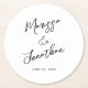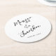 Moderne White Black Hand Letted Script Wedding Runder Pappuntersetzer