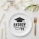 Die Teller für Rundpapier-Abschlüsse sind in einem klassischen Schwarzweiß-Typografie-Design (kann über "Anpassen!" geändert werden) mit einem Graduierungsdeckel und benutzerdefinierten Texten für den Namen und das Klassenjahr des Absolventen gestaltet.