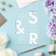 Moderne weiße Monogramm Hochzeitseinladung. Funktioniert mit fett formatierter Typografie und minimalem Grafikdesign. Personalisieren Sie Text mit allen Details Ihres besonderen Tages.