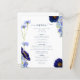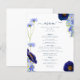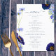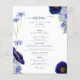 Schöne bohfarbene Wildblumen und blühendes Blattwerk in Blau, Maisblume, Marineblau, lila und grünen Farbtönen, ideal für einen einzigartigen Frühlings- oder Sommertag der Hochzeitskarte. Elegantes modernes Typografie-Skript in marineblau ergänzt das skurrile boho atemberaubende handgemalte Kunstwerk, das aus Kornblumen, Mohn, Kosmos, vergiss mir Noten und zartem Blattwerk besteht. Chic böhmisches Hochzeitsmenü, perfekt für eine Frühjahrswiese, Sommergartenhochzeit. Original-Kunstwerk von Catherine Sweetman