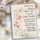 Mit dieser eleganten Einladung, die mit einer schönen Handschrift und einem prächtigen Seitenbukett aus bohligen Wildblumen in warmen, erdigen Farbtönen gestaltet wurde, verleihen Sie Ihrer Babydusche die perfekte Touch. Die einzigartige Kalligraphie verleiht dem Design eine spielerische, aber elegante Touch und verleiht ihm einen einzigartigen künstlerischen Flair. Der weiche braune Hintergrund verstärkt die Ästhetik der Natur und der Einfachheit und macht sie zur perfekten Wahl für ein modernes Boho-Fest. Lass dieses wunderschönen Designs verkörpere deine Vision - passen Sie sie jetzt an!