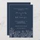 Elegantes, einfaches, minimalistisches Wildblume Blumendesign in Navy Blue lädt zum Winter, Hochzeit im Herbst ein. Es bietet einen romantischen Look mit handgeschriebener Schriftzeichen.