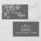 Moderne, blumengeschmückte Wirbel & Vögel graue Visitenkartenvorlage mit weißen Wirbel und gepunkteten Linien mit Blätter, Blume und Vögeln auf grauem Hintergrund. Dieses niedliche, moderne Design hat ein Retro-Ambiente und ist ideal für den persönlichen oder beruflichen Gebrauch.