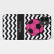 Moderne und trendy Zickzack Streifen rufen Zickzack Schwarzweiss-Streifen der Falleigenschaften, einen rosa Ihren Namens-, Anfangs- oder einen anderen Text des Fußbalballs und eines schwarzen Akzentgrenzrahmens für an. Zeigen Sie Ihre Persönlichkeit mit diesem Spaß und modischen iPhone Fall. Macht ein großes Geschenk für jede Anlässe. Klicken Sie "besonders anfertigen es!" an knöpfen Sie, um die Textgröße, die Textfarbe, die Schriftartart und mehr zu ändern!