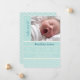 Passen Sie diese moderne und schicke Baby-Geburtsankündigungskarte mit dem Foto und den Details Ihres Babys an. Die Karte weist ein blaues Zickzack Muster auf.