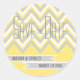 Moderne Zickzack, graue, gelbe Hochzeit Das Datum Runder Aufkleber