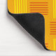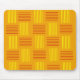 Dieses Mauspad hat ein modernes Design aus der Mitte des Jahrhunderts, das wie ein Gewebe mit roten und gelben Linien auf einem Feld aus Gold aussieht.