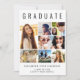 Eleganter und moderner Abschluss Ankündigung, den Absolvent mit "GRADUATE" über die Spitze in großen Typografie, eine 7-Foto-Collage und seinen Namen, Klassenjahr und Schule in einfachen Typografie zu feiern. Fügen Sie auf der Rückseite ein zusätzliches Foto und eine benutzerdefinierte Meldung hinzu.