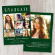 Elegante grüne Abschluss-Ankündigung mit "GRADUATE" über die Spitze in großen weißen Typografie, eine 7-Foto-Collage und seinen Namen, Klassenjahr und Schule in der modernen weißen Typografie. Fügen Sie auf der Rückseite ein zusätzliches Bild und eine personalisierte Nachricht hinzu.