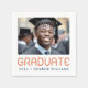 Moderne Abschluss-Servietten mit Ihrem Foto und dem Text "Absolvent" in einem modernen Schriftart mit Ihrem Jahr, Schulname oder Namen unten. Dunkelblauer und orangefarbener Text auf weißem Hintergrund.