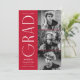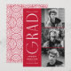 Stilvolle Abschluss-Ankündigung mit den drei Fotos des Absolventen rechts neben dem Design in einer vertikalen Anordnung. "Grad" wird in weißem, modernem Deko mit rotem Hintergrund dargestellt. Personalisieren Sie die Ankündigung des modernen Foto-Abschlusses, indem Sie den Namen des Absolventen, das Jahr des Abschlusses und den Namen der Schule hinzufügen. Das Design kehrt sich um, um einen roten und weißen geometrisch wirbelnden Hintergrund anzuzeigen. Perfekt für Uni-Abschluss und Gymnasiasten!