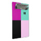 Eine stilvolle und moderne Mini-Zwischenablage mit abstraktem Farbgebälk. Die Farbsektion in Magenta, Schwarz, Türkis und Rosa verleiht Ihren täglichen Aufgaben einen lebendigen Farbstich. Die Rückseite der Zwischenablage ist schlicht magenta. Personalisieren Sie die trendige Zwischenablage mit einem Initial, das als Monogramm oben rechts im Design erscheint.