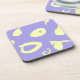 Dieser moderne, akrilische Untersetzer ist mit weißgelben Flecken und grafischen Gesten auf einem schlichten, lebendigen Lavendelhintergrund gestaltet.