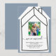 Einfach trendy minimalistisch schwarz, weiß und staubblau neue Zuhause-Handschrift Kalligraphie-Skript lustig Foto bewegen Ankündigungskarte. ++++++++ Einfach mit Ihrem eigenen Foto und Text personalisieren.