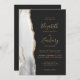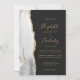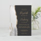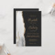 Die links Seite dieses eleganten, modernen Hochzeitseinladens besticht durch eine grau-weiße Aquarellgrenze, die mit dem vergoldeten Glitzer der Imitate bestickt wurde. Der anpassbare Text kombiniert goldfarbene Handschrift, Copperplate und kursiv Schriftart auf einem schwarzen Hintergrund. Die Rückseite bietet Platz für Hochzeitsdetails auf einem soliden, schwarzen Hintergrund, zusammen mit einem QR-Code, den die Gäste scannen können, um Ihre Website und UAWG zu besuchen, was die Kosten für den Druck und das Verschicken separater RSVP-Karten rette.