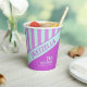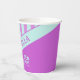 Der moderne Pastel Aquamarin Pink Stripes Paper Cup ist ein Party, das sich perfekt zum Geburtstag oder zu jedem Anlass eignet. Die weichen Pastellfarben aquamarin und rosa verleihen dem Design eine spannende Atmosphäre. Die Oberseite ist in senkrechten Streifen gehalten, in der Mitte befindet sich der pastellfarbene aquamarine Streifen, der den Namen des Prominenten hervorhebt, in der rechten unteren Ecke befinden sich die Geburtstagsdetails auf dunkelrosa Hintergrund.