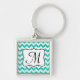 Moderner Aquamariner Glitzer Zickzack Zig Zag Stripe Monogram, erste Schlüsselkette
