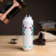 Inhale Peace, Exhale Hop-Piness, lustiger, niedlicher Frosch praktiziert Meditation und reflektiert über die Wichtigkeit des Atmens. Farbig in grün und rosa, auf einer dünnen Kupfer-Vakuum-Flasche mit Insulinmehl.