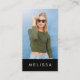 Schwarze, vertikale Visitenkarten mit Ihrem Namen und Foto auf der Vorderseite und Namen, Titel und Kontaktinformationen auf der Rückseite.