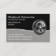 Moderne Automobil-Dienstleistungen Business-Card-Design in einem bearbeitbaren Stil mit cooler Kfz-Reifen- und Chrom-Felgen-Grafik und klassischem Layout für einen Kfz-Mechaniker , Reifenladen oder Kfz-Reparaturservice.