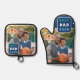 Moderner Bester Vater je Foto Vatertag Oven Mitt & Pot Holder Set. Ein maßgeschneidertes Foto und moderne, trendige, mutige Typografie.