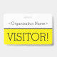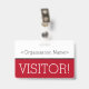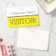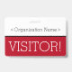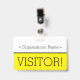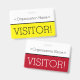 Dieses schlanke Abzeichen-Design beinhaltet die Meldung "VISITOR!" und einen benutzerdefinierbaren Firmennamen oder eine andere benutzerdefinierte Nachricht. Ein Abzeichen wie dieses könnte verwendet werden, um anzuzeigen, dass ein Besucher oder Gast an einem Arbeitsplatz dort sein darf. [~Z0000307]