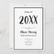 Eine moderne lässige Script Graduierungsparty in einem schwarzen Rahmen mit kalligrafischem und sans serif Schriftart für diesen klassischen, aber eleganten Rand. Stellen Sie Ihr Foto auf der Rückseite für eine personalisiertere Einladung.