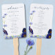 Das schicke böhmische Hochzeitsprogramm beinhaltet Zeremoniedetails und das Hochzeitsfest-Brautparty mit leicht zu personalisierenden Vorlagen, die sich perfekt für eine Frühjahrswiese, eine Hochzeitsfeier im Sommergarten eignen. Schöne handbemalte Aquarellfarben und blühendes Blattwerk in Blau, Maisblume, Marineblau, lila und grünen Farbtönen, ideal für einen Frühlings- oder Sommertag der Hochzeit. Elegante moderne Typografie-Schrift in marineblau ergänzt das skurrile boho atemberaubende handgemalte Kunstwerk, zu dem auch Kornblumen, Mohn, Kosmos, vergiss mir Noten und zartes Blattwerk gehören. Original-Kunstwerk von Catherine Sweetman